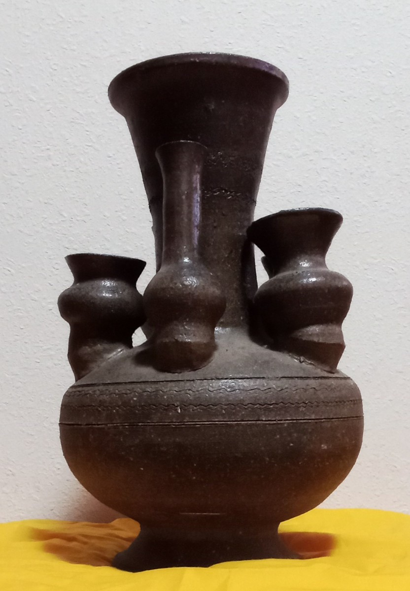 - 初だし 燻焼子持壺 共箱栞付き 共同釜作 能登 珠洲焼き 素焼き土器 七管土器 須恵器 発掘複製土器