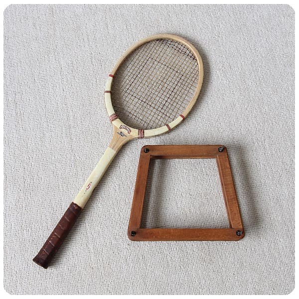 - イギリス ビンテージ 木製 テニスラケット ラケットプレス付き インテリア カバー「ディスプレイに」P-209