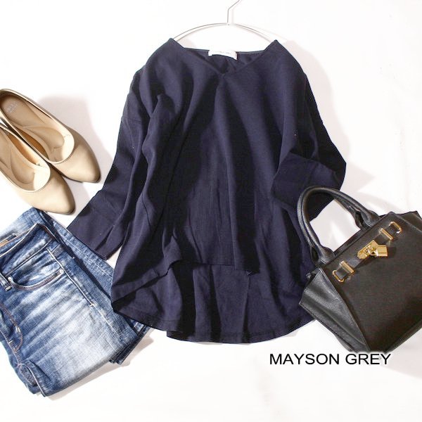 - 美品 MAYSON GREY メイソングレイ コットン100% 立体ジャージー生地 バックテール ストレッチ カットソー 1号 S 春 秋 合服 24A03
