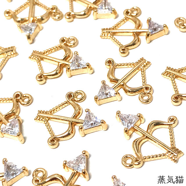 - c2265 愛のキューピット弓矢ジルコニアチャーム6個【天使ピアス ハンドメイド用アクセサリーパーツ素材】蒸気猫パーツ