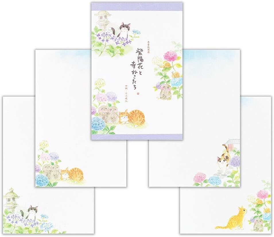 - エヌビー社 便箋 ねころび 紫陽花と寺ねこ | 4柄アソート 16枚入 a5相当 4590443 /【メール便OK】