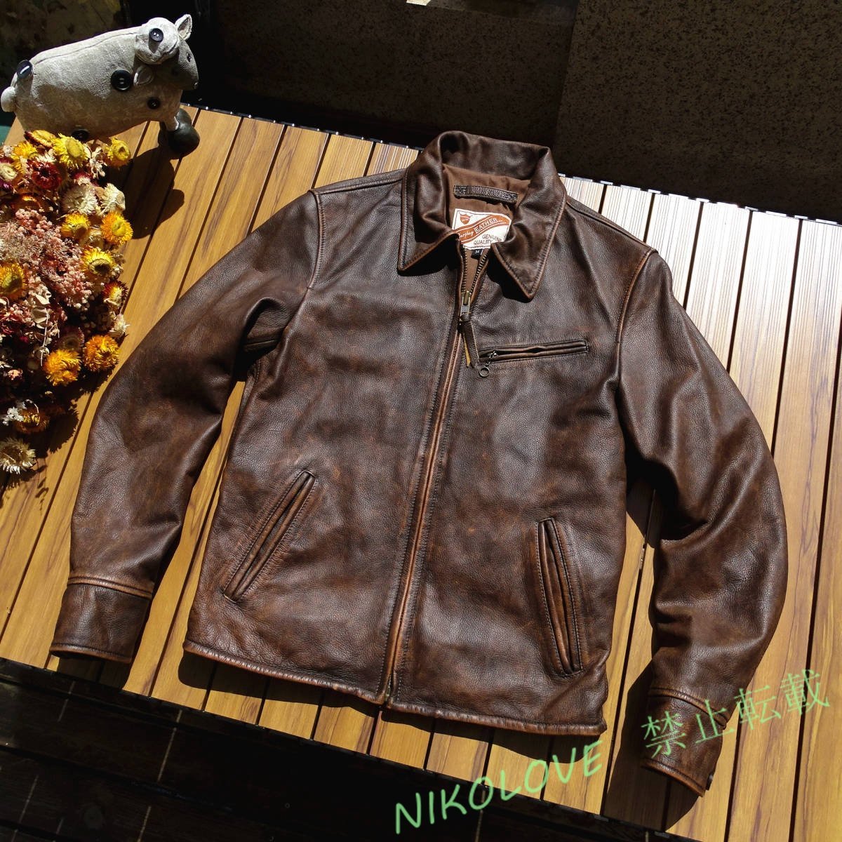 - 新品 ヴィンテージ復刻デザイン 新品 茶芯牛革 カウハイドレザー ユーズド加工 ライダースジャケット S~4XL AA622