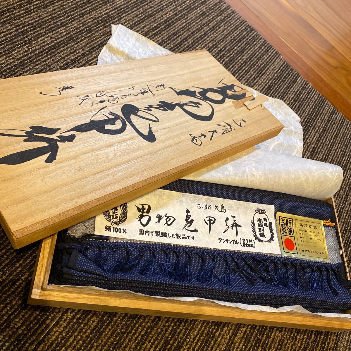 - 大島 正絹 男物 反物 亀甲柄 新品 着物