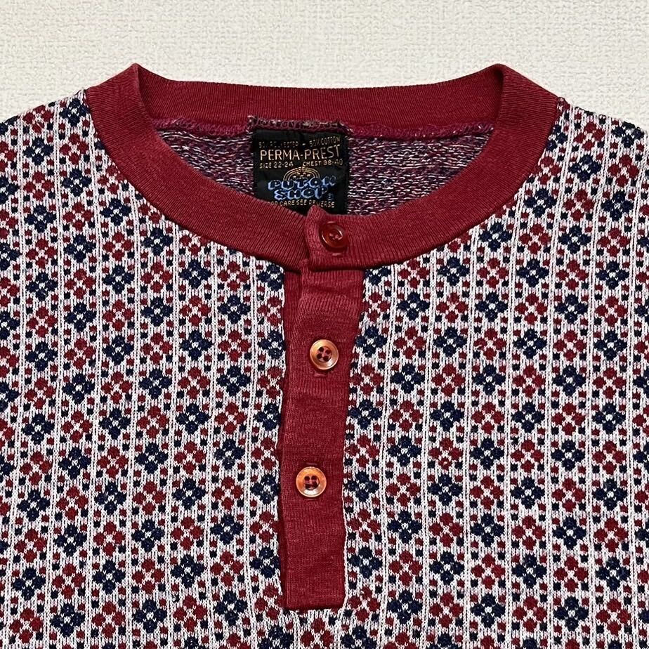 - h309 希少 70 年代 SEARS PERMA PREST PUT ON SHOP ヘンリー ネック L/S TEE 総 柄 ロンT シャツ シアーズ 70s vintage ビンテージ