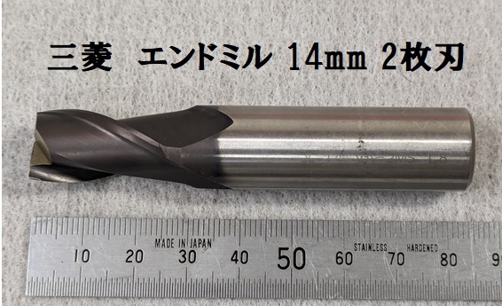 > H14★三菱 2枚刃 エンドミル 14mm VA-2MS(高級粉末ハイス) シャンク径Φ16mm★状態良★