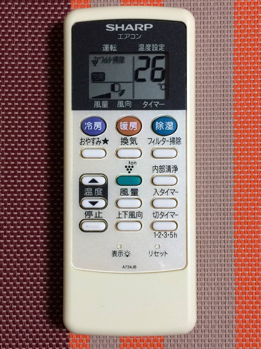 - 黄ばみあり★背面擦れあり★送料無料★SHARP★シャープ★純正★エアコン用リモコン★A734JB★中古★動作品★返金保証あり★
