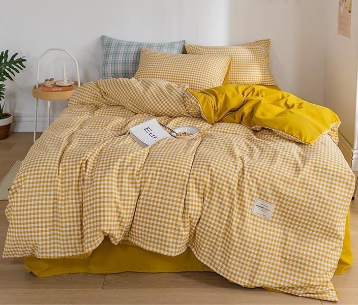 > チェック柄 布団カバー 4点セット 寝具カバー 用 ベッドカバー おしゃれ 洋式 ボックスシーツ 四季適用 HD618