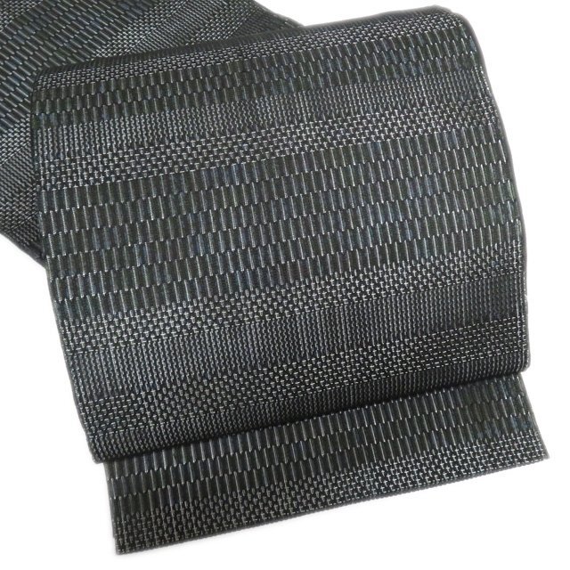- 夏物 袋帯 中古 リサイクル 正絹 フォーマル 仕立て上がり 六通 黒色 緑系色 銀 きもの北條 A992-21