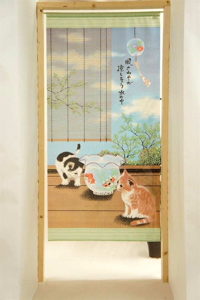 - 新品 暖簾 のれん 170cm丈 ロングサイズ 「夏ネコボーダー」【日本製】