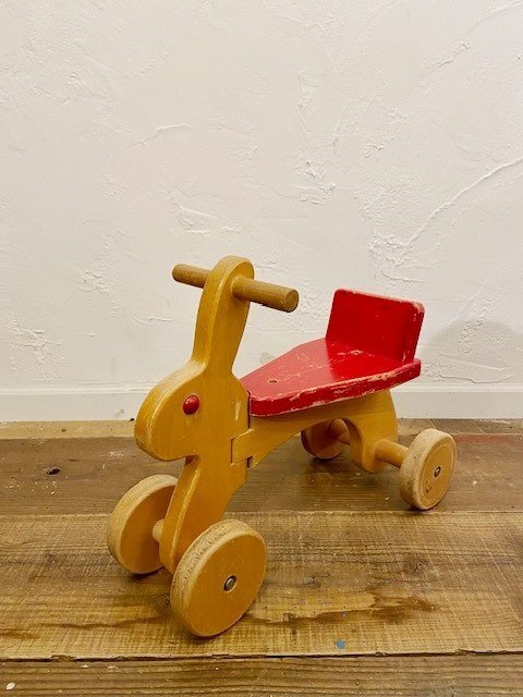 - ヴィンテージ 3輪車 レトロ 木製 子供 おもちゃ インテリア 乗り物 中古 ディスプレイ【9760】