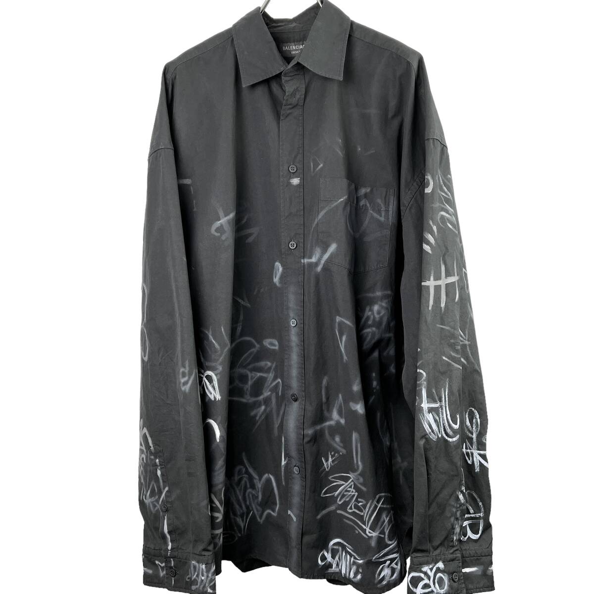 > 【20%OFF】Balenciaga(バレンシアガ) GRAFFITI SHIRT OVERSIZED グラフィティオーバーサイズ長袖シャツ 23SS (black)