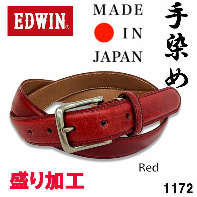 - レッド EDWIN エドウイン 日本製 手染め 盛り加工 ビジネス ベルト 1172