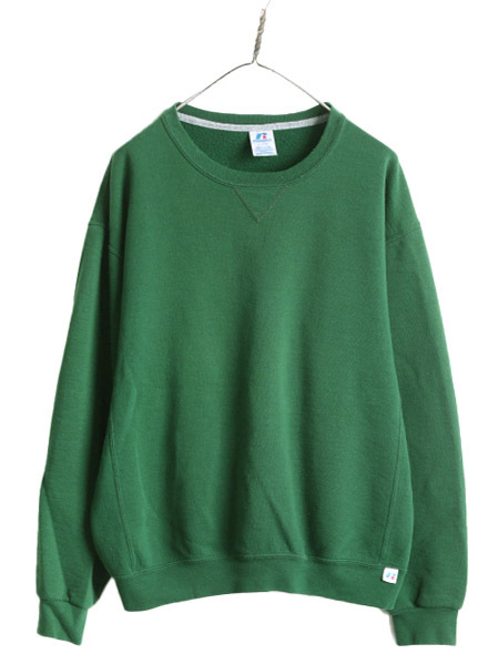 - 00s ラッセル 無地 スウェット メンズ レディース L 古着 00年代 オールド RUSSELL トレーナー スエット 裏起毛 前V クルーネック グリーン