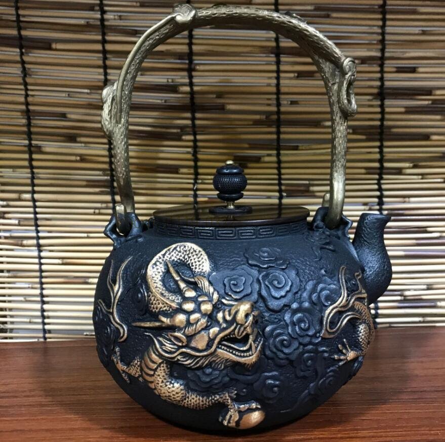 - ★新品未使用★ 大容量鉄壺 コーティングなし 手作り鉄 やかんを沸かす お茶の道具★ 提梁壺 1200ML