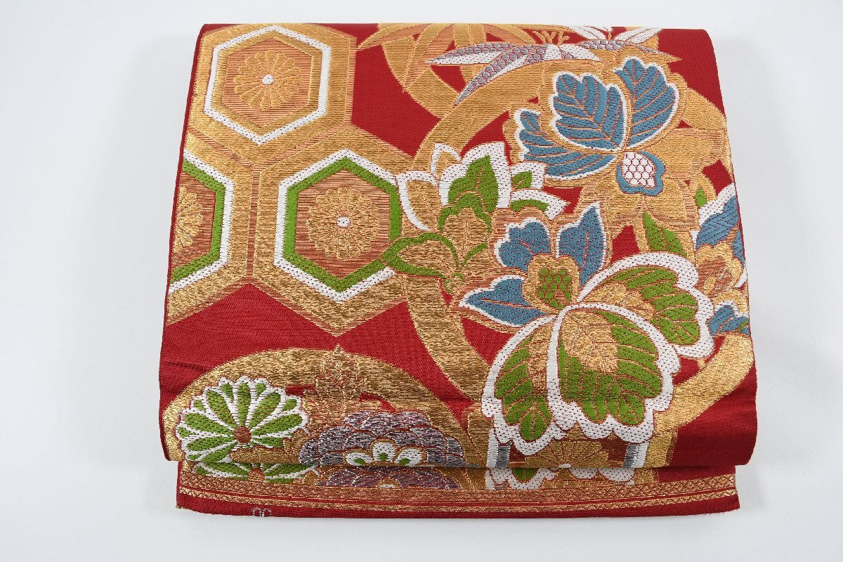 - 袋名古屋帯 六通柄 幾何学模様 葉 帯丈394cm ★着物屋 ne-8933 桜庭呉服店