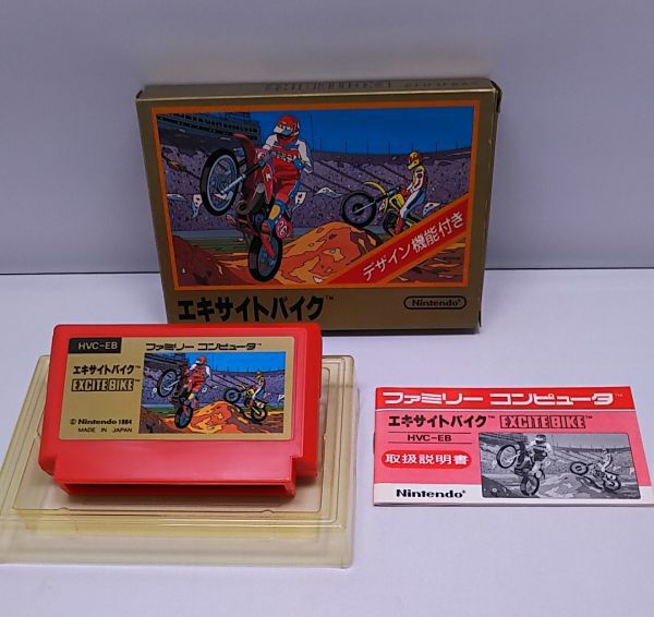 > ファミコンソフト◆エキサイトバイク 動作確認済み デザイン機能付き FC 外箱 取扱説明書付き HVC-EB ファミリーコンピューター