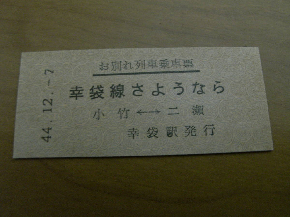 - お別れ列車乗車票 幸袋線さようなら 小竹-二瀬 昭和44年12月7日 幸袋駅発行