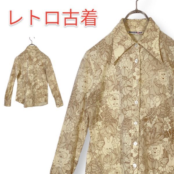 - 90s 総柄 動物柄 長袖シャツ ブラウス レディース レトロ 昭和ビンテージ 古着 匿名配送