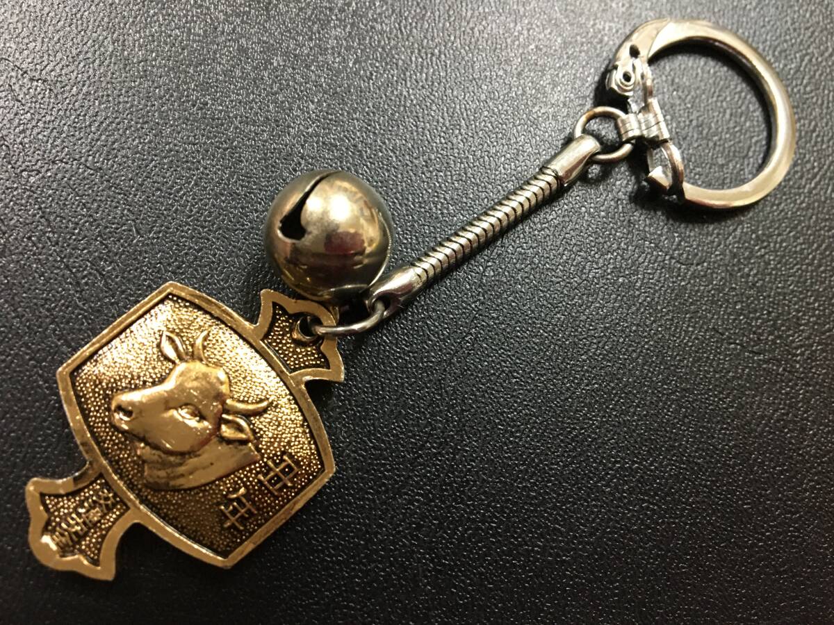 - ★送料無料★1970年代頃・レトロ★寿・丑年「キーホルダー」干支 牛 開運 交通安全 観光 土産物(えもや菓子缶C保管)