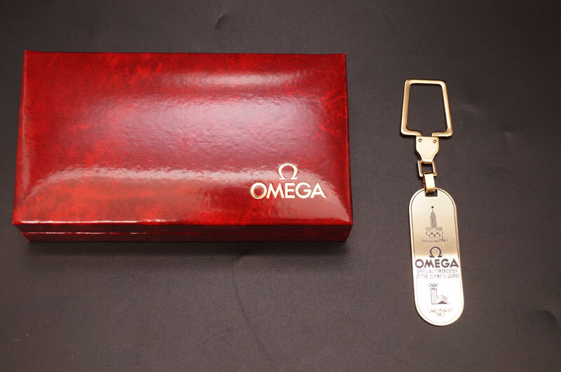 - yh60-OMEGA オメガ キーホルダー 金属製 ゴールドカラー キーホルダー 公式タイムキーパー記念 モスクワオリンピック 箱付