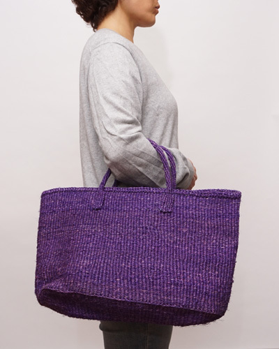 - ケニア サイザルバッグ パープル ワイドタイプ Lサイズ アフリカンバッグ かごバッグ トートバッグ