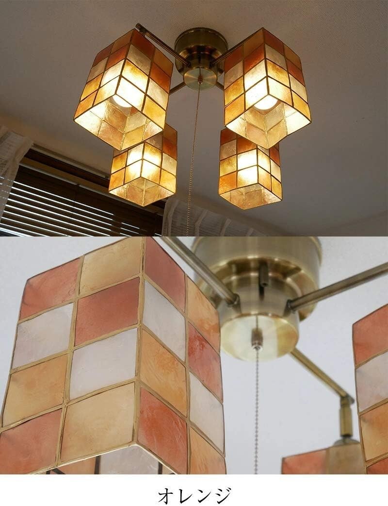 - KML シーリングライト カピス貝の自然素材 電球別 4灯 クロス 本体ゴールド【オレンジ】