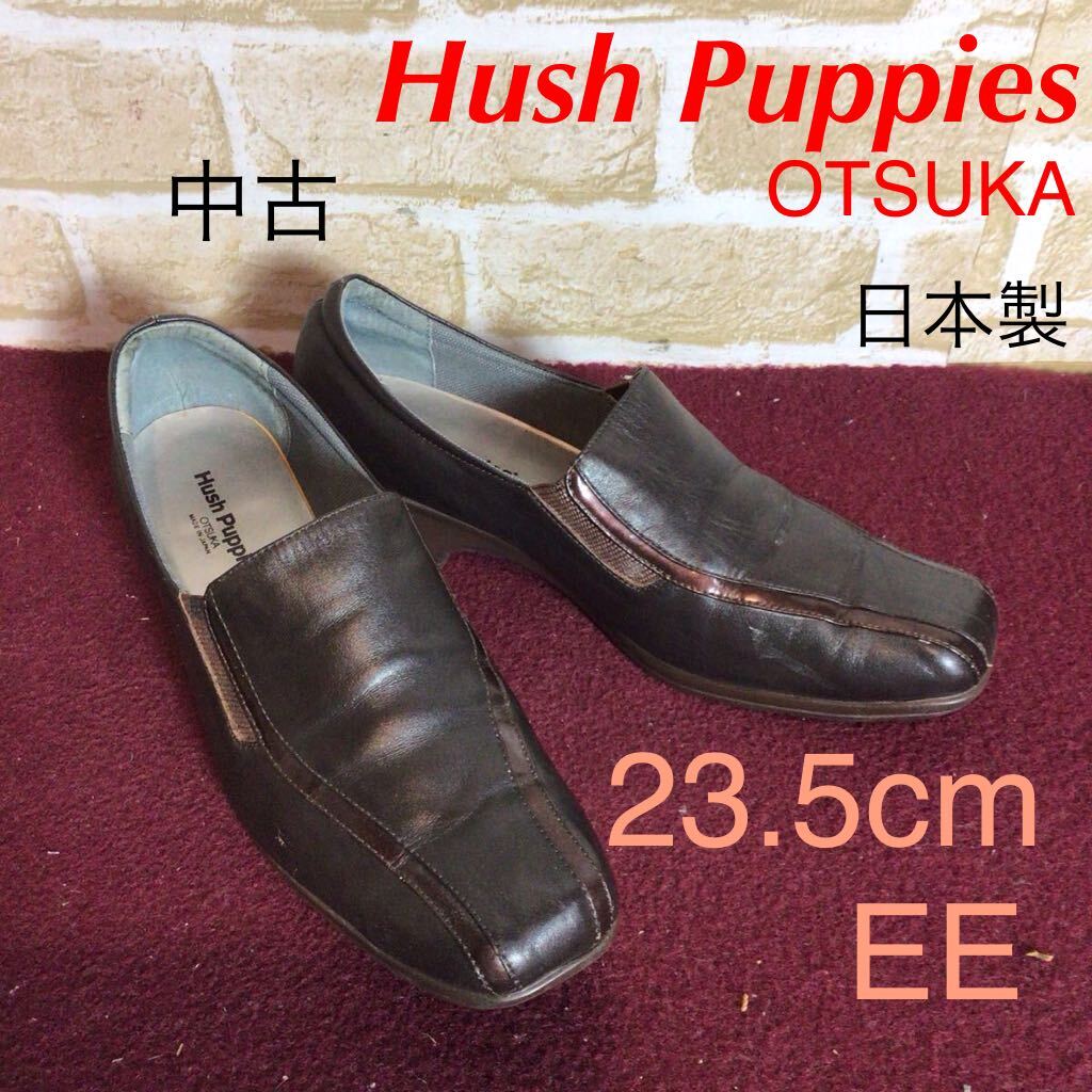 - 【売り切り!送料無料!】A-356 Hush puppies OTSUKA!パンプス!ブラウン!23.5cm EE!スリッポン!サイドゴム!ウェッジソール!中古!