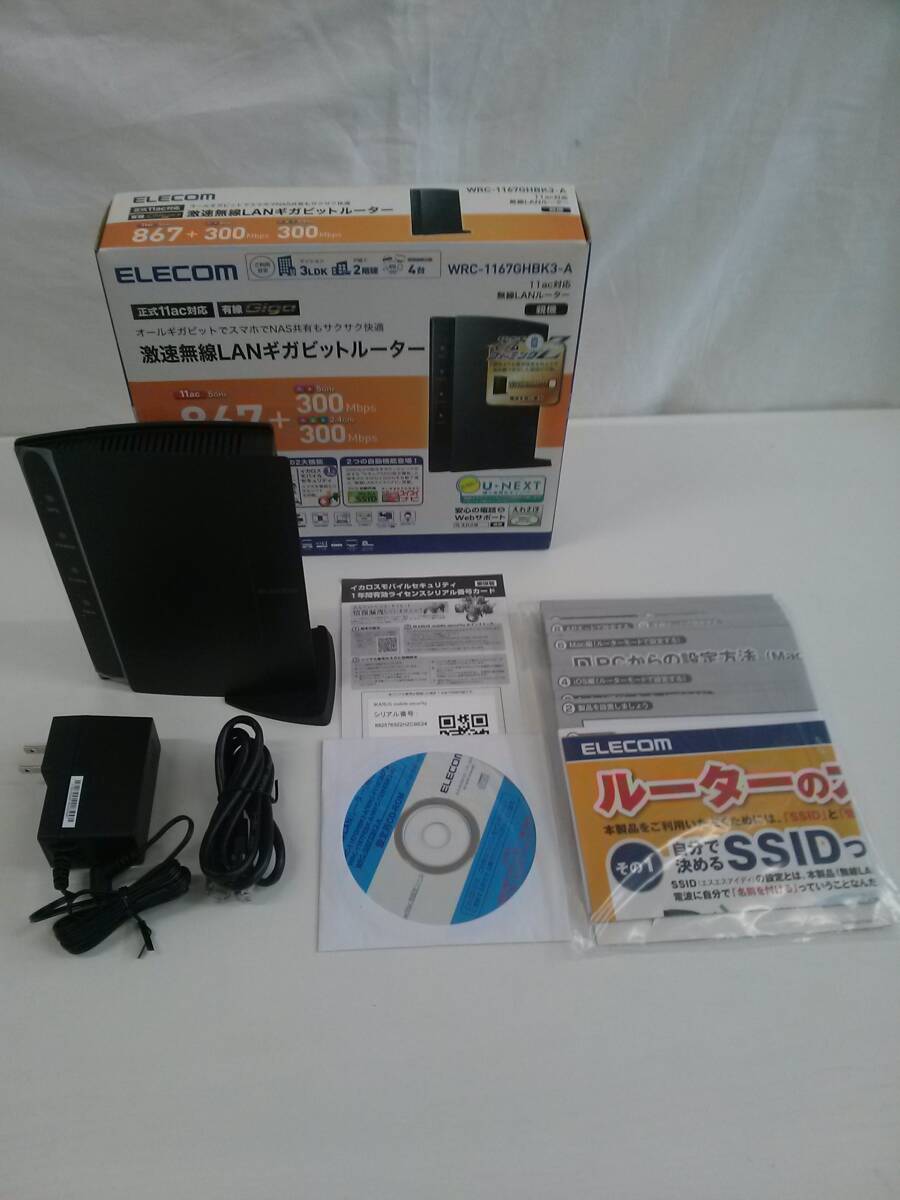 > 【TN-592】動作未確認/ELECOM/激速無線LANギガビットルーター WRC-1167GHBK3-A/親機/無線ルーター/ブラック【HK】