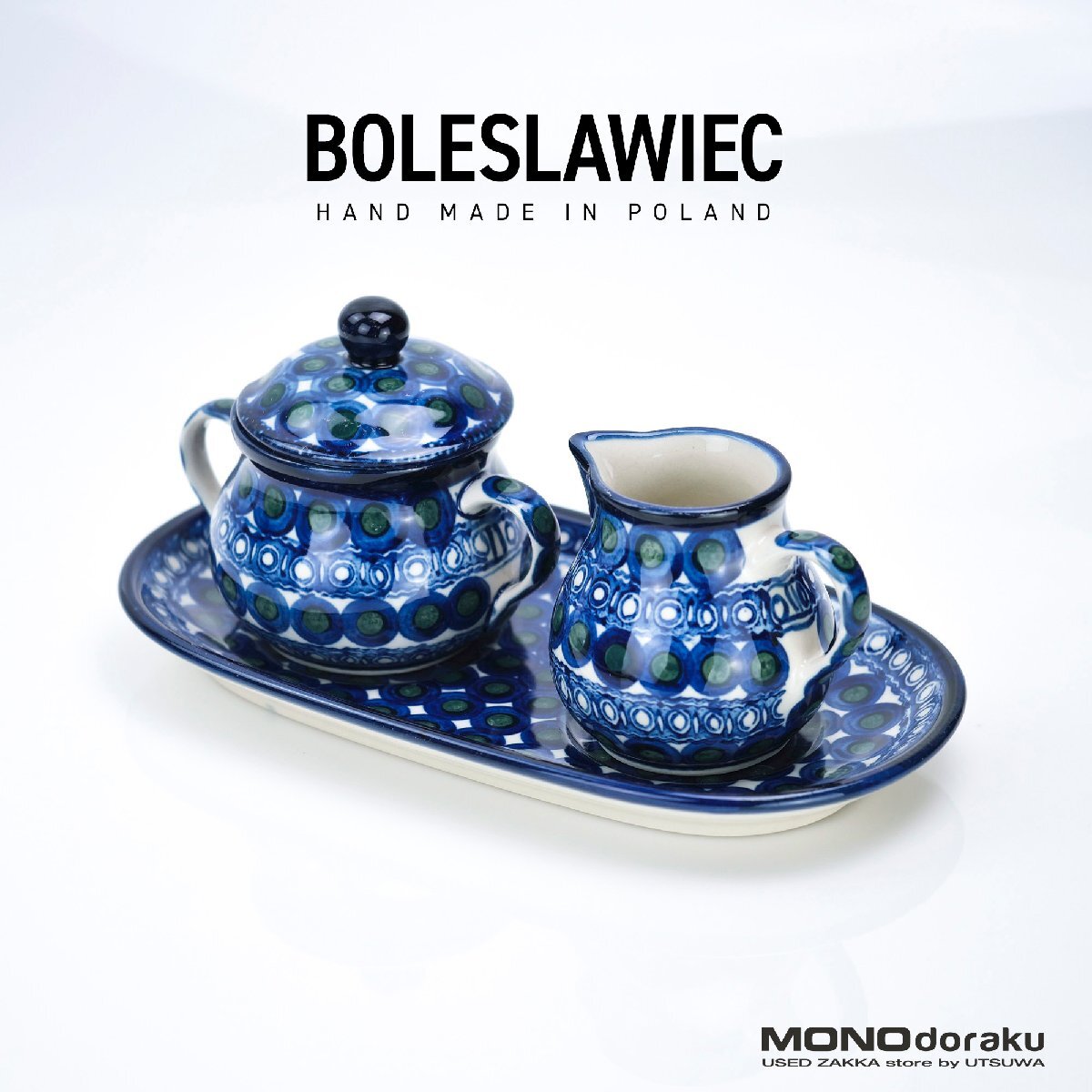 > ポーリッシュポタリー ボレスワヴィエツ シュガーポット&クリーマー・トレー 3点セット ポーランド陶器
