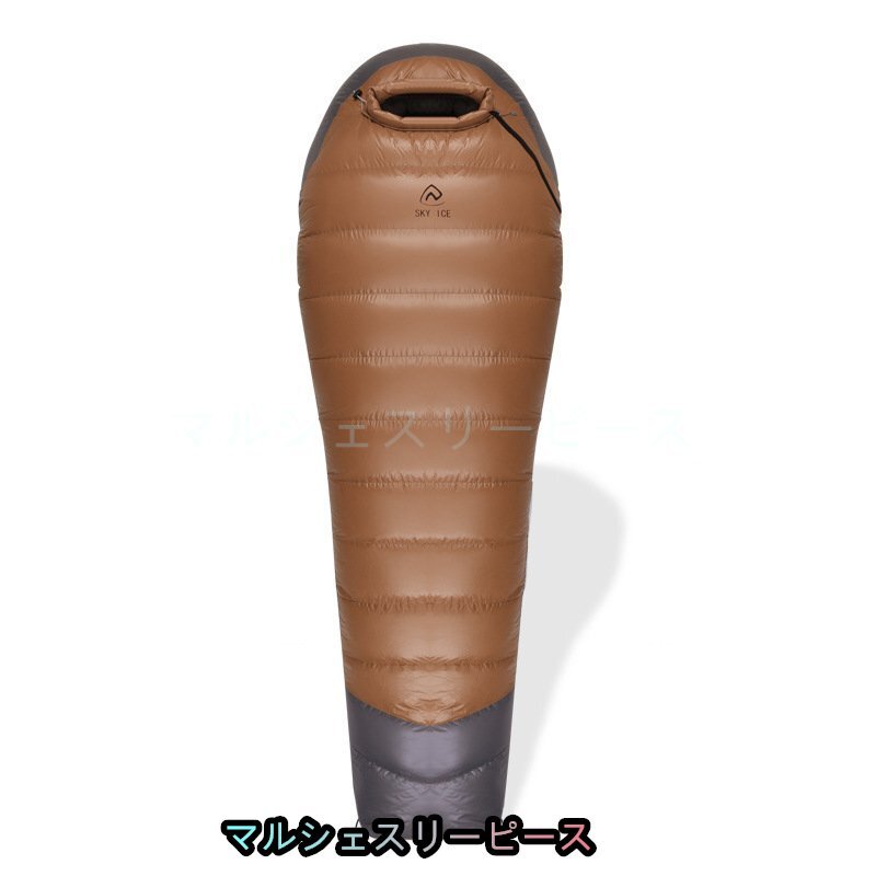 - 高品質 寝袋 グースダウン95% マミー型 冬用 羽毛 400T撥水加工 コンパクト アウトドア キャンプ 登山 車中泊 防災用 連結可 400g ブラウン
