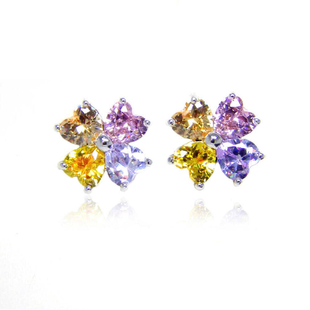 > 再入荷★極上の逸品 レディース 豪華 ジルコニア 四つ葉クローバー 4連マルチカラーCZダイヤモンドピアス シルバー 限定 イヤリング化可