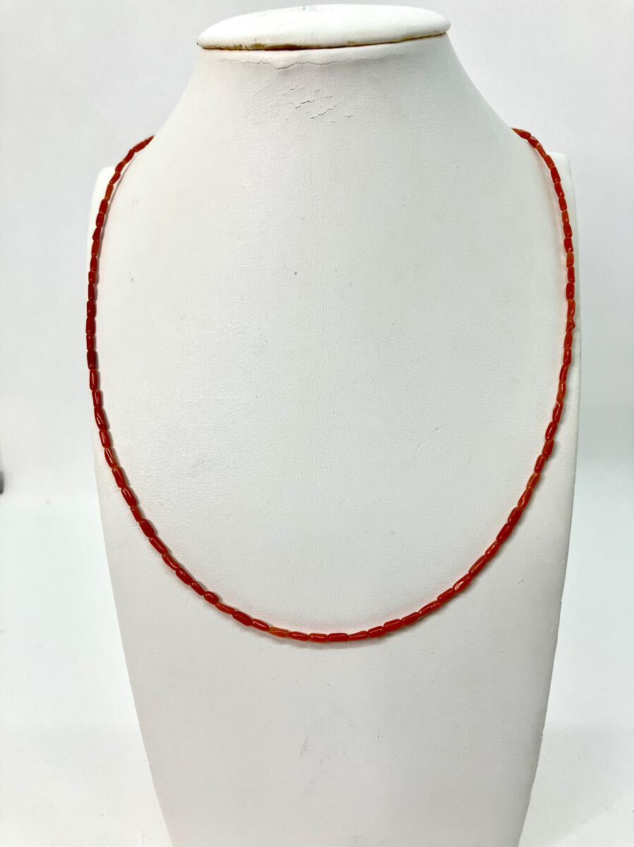 > 【新品】天然 艶やか 珊瑚 サンゴ コーラル ネックレス パイプ型 ピンクサンゴ シンプル 三月誕生石