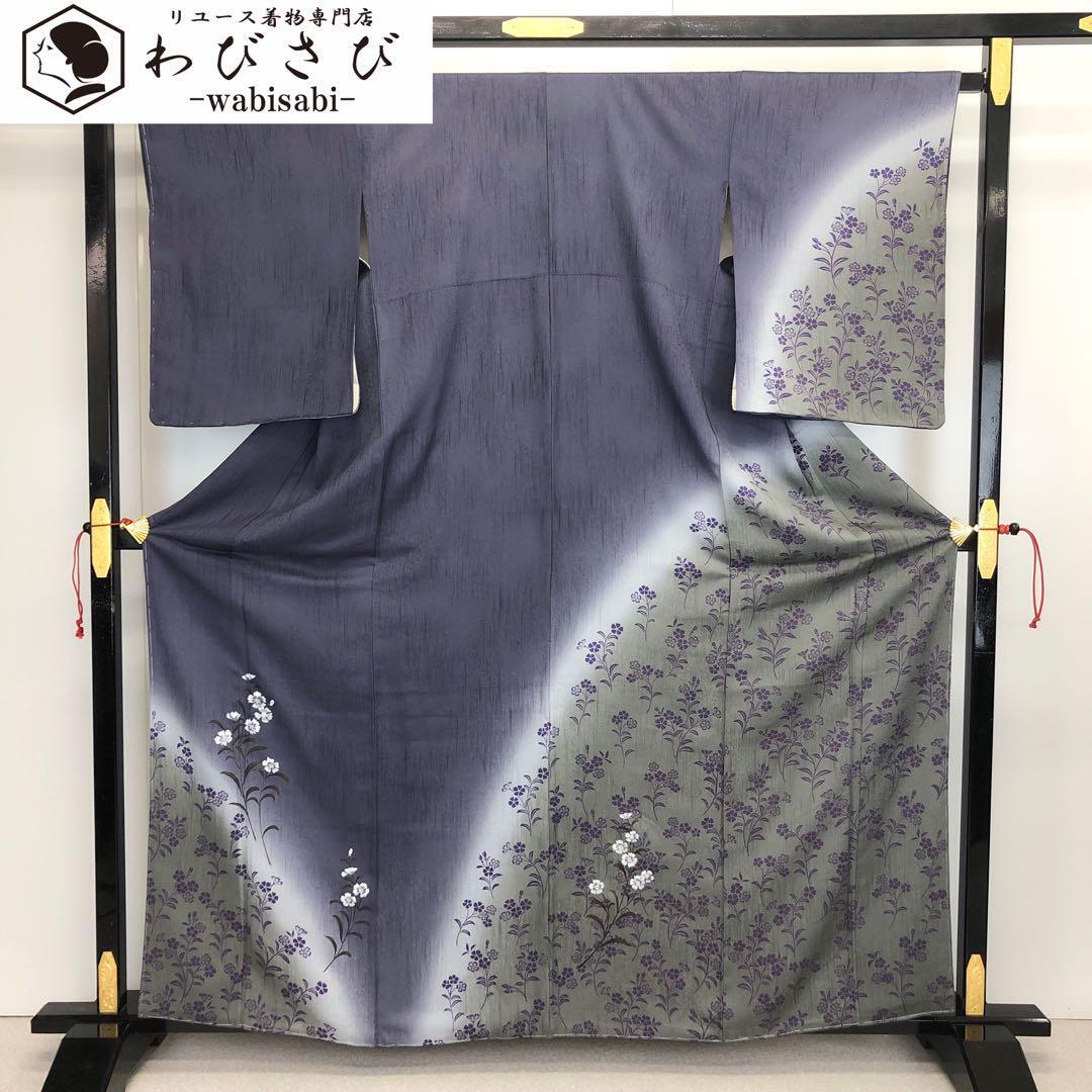鳩羽紫色のお色味に暈し、上品な撫子の友禅花柄模様がデザインされた品のある素敵な柄裄のお品でございます。