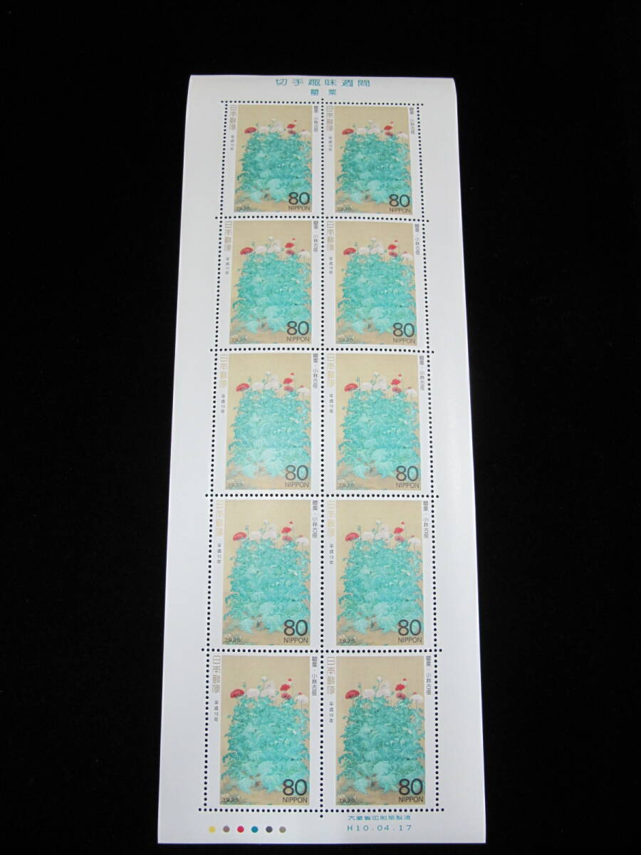 - 切手趣味週間 1998年 罌粟 80円 記念切手シート ⑧