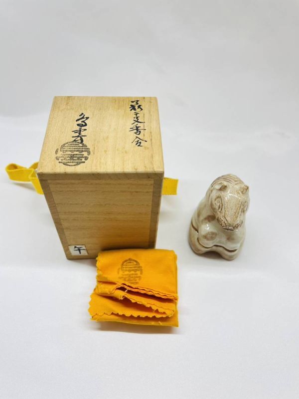- 【未使用美品】萩焼 納富鳥雲造 香合 午 干支香合 大華山鳥雲 茶器 茶道具 共箱