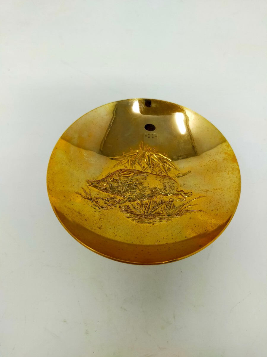 - 金杯 24KP 猪 いのしし 酒器 干支 アンティーク 置物 縁起物 昭和レトロ 工芸品 ① S