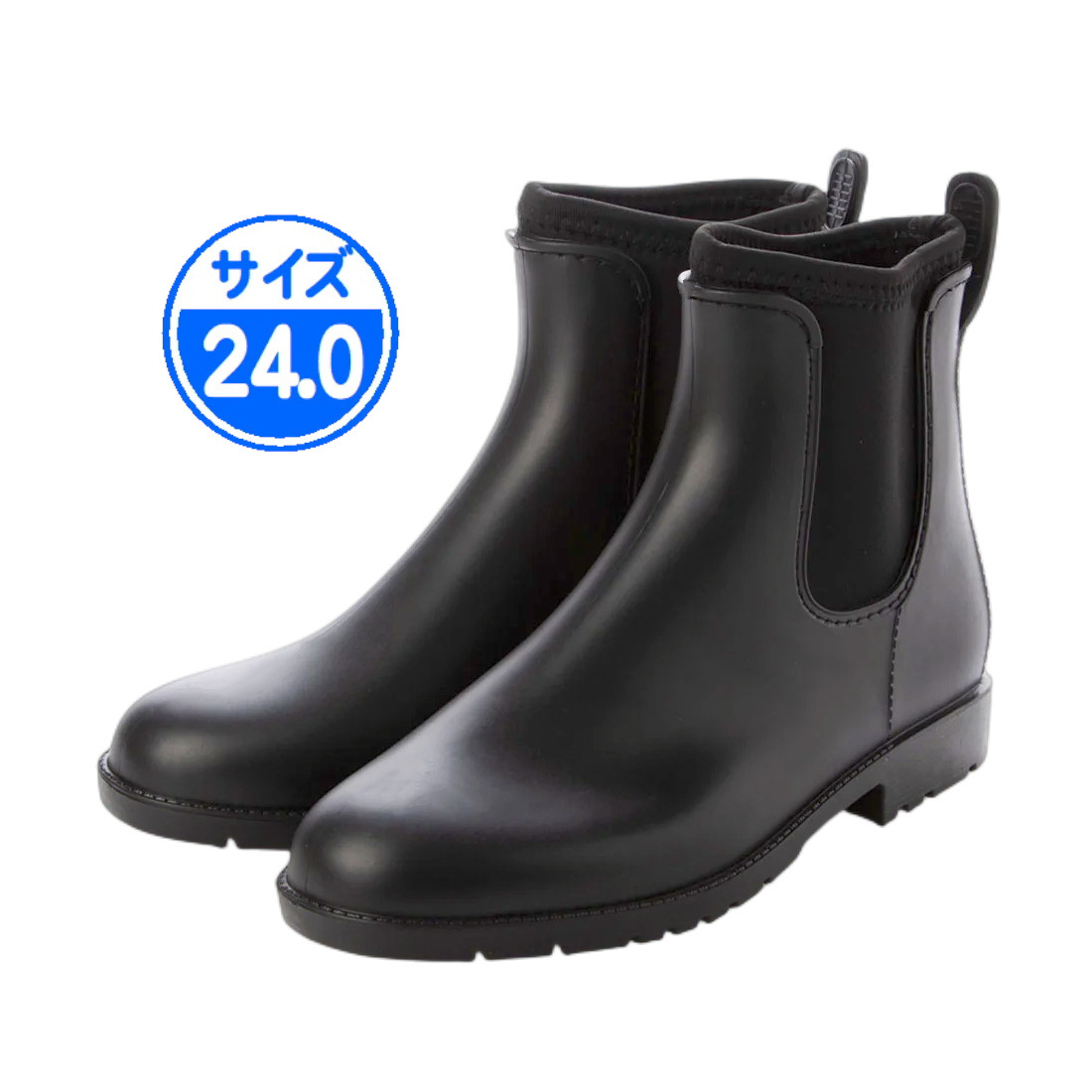- 【アウトレット】サイドゴア レインブーツ ブラック 24.0cm 黒 22032