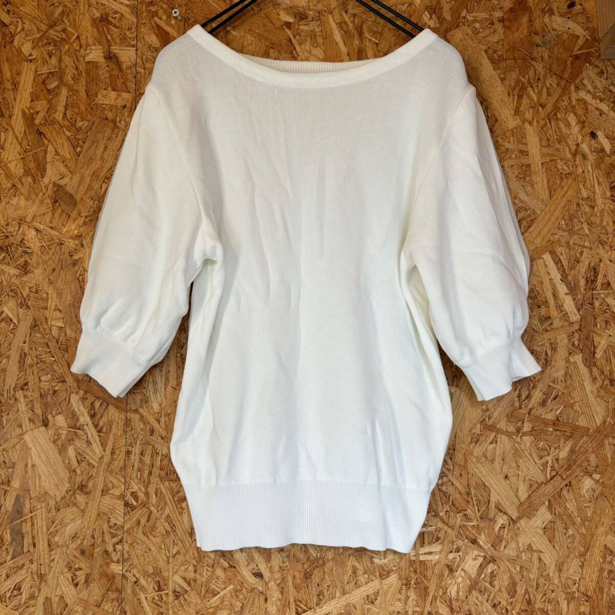 - 美品 index 半袖 サマーニット 袖シースルー トップス レディース 五分袖 ホワイト Lサイズ 3094