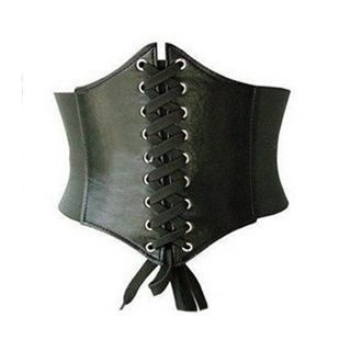 - コルセット フェイクレザー レースアップ ベルト (ブラック) 抜群の存在感 ウェストマークでスタイルアップ 新品