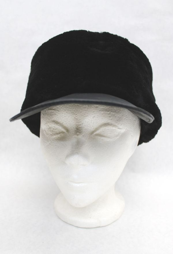 - カスタムメイド メンズ ブラック・ミンク&レザー毛皮ファー・ハット 帽子