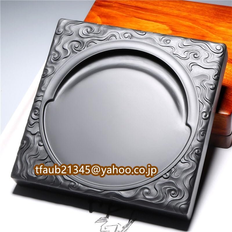 - 【ケーリーフショップ】彫花硯 天然石 14.5cm 歙州硯 老坑 硯石 手彫り 書道用品【専用化粧箱入り】