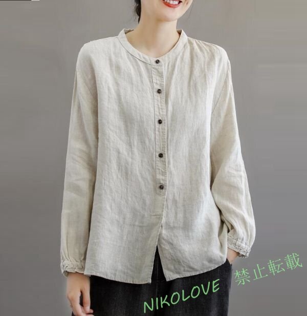 - LC030 チュニック トップス レディース 綿麻シャツ ブラウス 長袖 大きいサイズ シンプル ゆったり 4色/M~3XLサイズ選択/1点