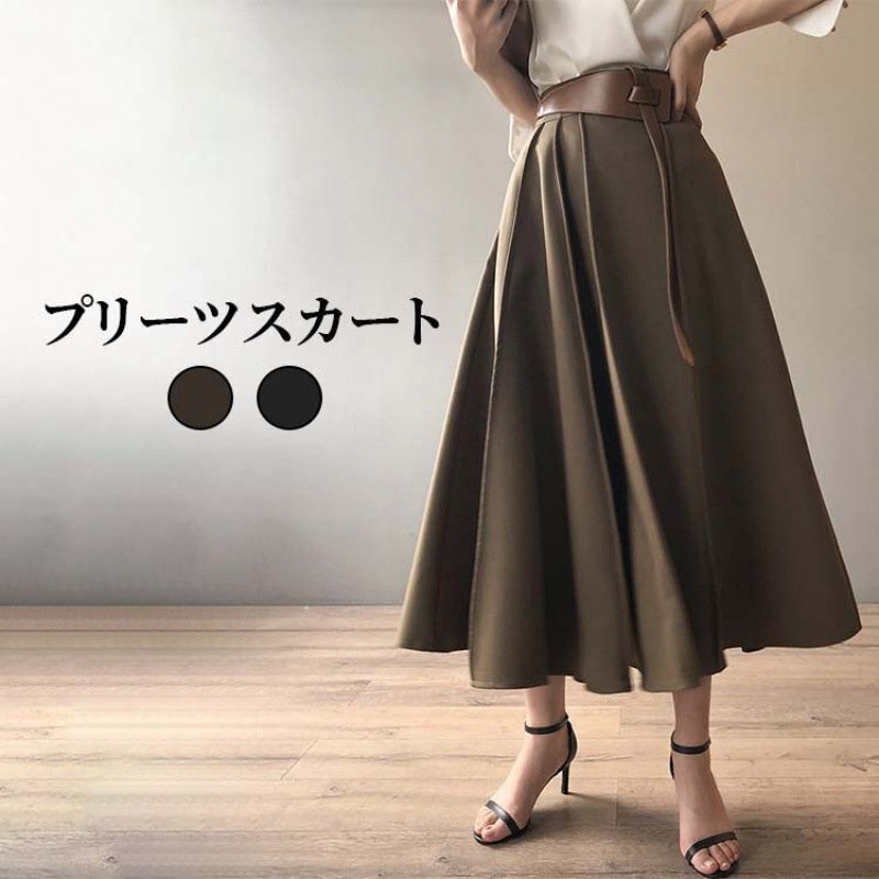 - LB901 スカート レディース プリーツスカート フレアスカート Aライン ハイウェスト 無地 きれいめ 事務服 上品フェミニン M~Lサイズ