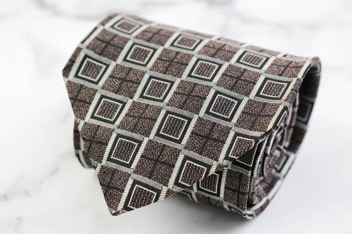 > バレンシアガ シルク スクエア柄 格子柄 パネル柄 日本製 ブランド ネクタイ メンズ ブラウン BALENCIAGA