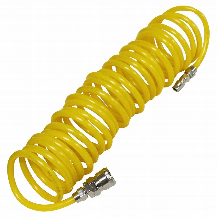 - 外径8mm エアー コイル ホース 6m イエロー 黄 ワンタッチ クイック カプラー 1/4 オス メス エア ツール ダスター ガン 工具