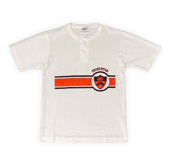 - 70's 80's ミントコンデション 米国製 ベルバシーン Velva Sheen ヘンリーネック Tシャツ プリンストン PRINCETON 白 ホワイト M [ta-1044]
