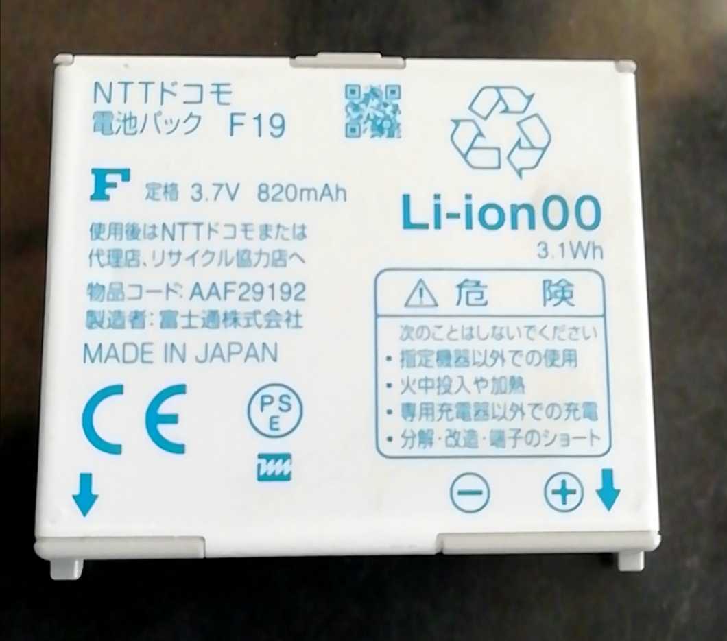> 【中古・残り1個】NTTドコモF19純正電池パックバッテリー【充電確認済】対応機種(参考)F-02C/F-03C/F-04C/F-05C/F-06D/F-10C/F-11C