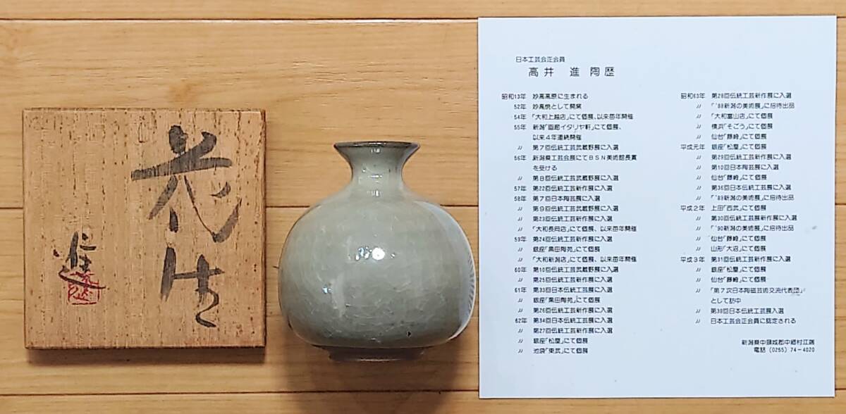 > 新潟県 妙高焼 ◆ 日本工芸会正会員【 花生 高井進 作 】妙高焼 一輪挿し 花生 徳利 花器 ◆ 共箱 栞付き : 本物保証