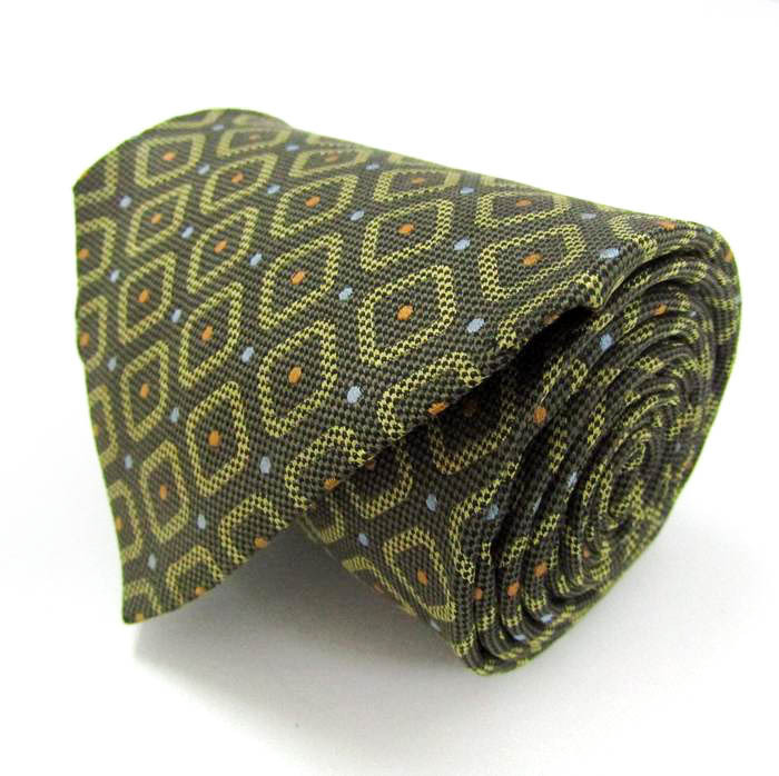 > オリバーバレンチノ ブランド ネクタイ ドット 格子柄 スクエア柄 シルク イタリア製 PO メンズ カーキ valentino oliver