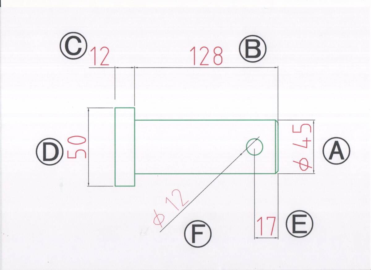 - NO 1771 Φ45用 ツバ下128mm バケットピン 1本
